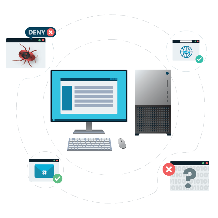 Using the ThreatLocker® solution, you can deny any application from running on your device that is not a part of the Allowlist. This helps to mitigate and stop cyberattacks from happening on your devices or across your network.